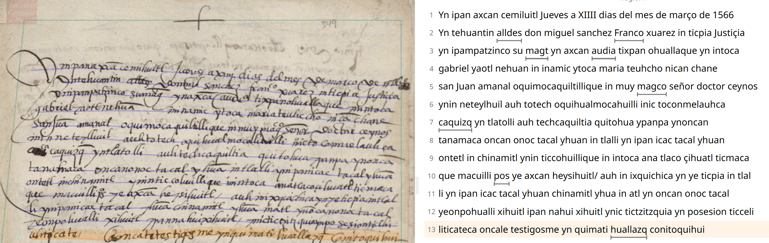 Training models capable of reading Indigenous Náhuatl was key to understanding the documents in the collection. © Transkribus