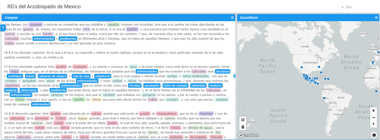 The Geographical Text Analysis software allowed the team to cross-reference grographic entities with textual information. © Patricia Murrieta-Flores