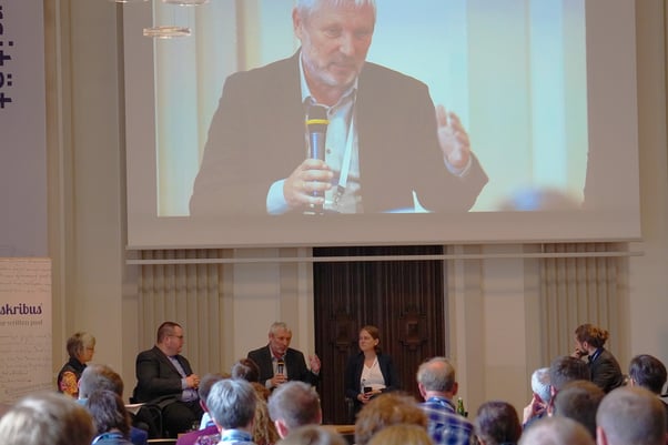 Günther Mühlberger, chair of READ-COOP, during the panel discussion at the TUC 22